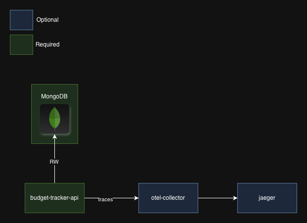 Architecture Architecture Budget Tracker has - for now - a simple architecture, only requiring MongoDB to save your data.